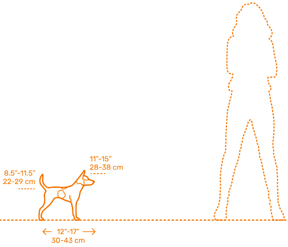 Papillons have a withers height between 8”-11” (20-28 cm) and a weight in the range of 5-10 lb (2.3-4.5 kg). The Papillon has an overall body length of roughly 12”-17” (30-43 cm), standing height of 12”-16.5” (30-42 cm), and a typical lifespan of 14-16 years.